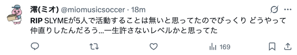公式の発表があるかどうか分かりませんが、引き続きRIP SLYME5人での再結成の真偽について
