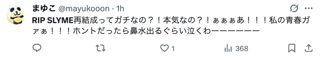 もし、RIP SLYME5人での再結成が本当なら、こんなに嬉しいことはないですよね!